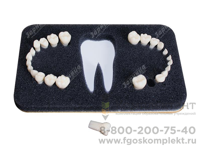 Комплект из 24 модельных зубов естественной формы с винтовым креплением для установки в денто-модели ЧВН-24. Материал зубов по своим физическим характеристикам максимально приближен к естественным.